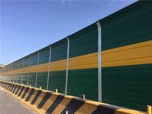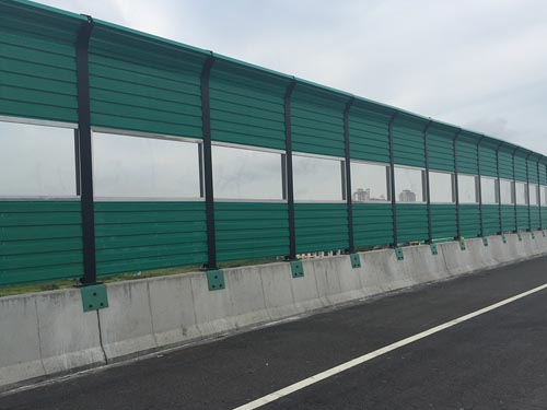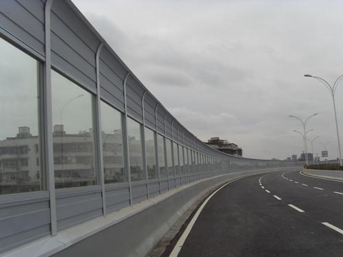 凹凸穿孔声屏障的减噪量与噪声的频率、屏障的高度以及声源与接收点之间的距离等因素有关。金属声屏障的减噪效果与噪声的频率成分关系很大,对大于2000Hz的高频声比800一1000Hz左右的中频声的减噪效果要好,但对于25Hz左右的低频声.则由于声波波长比较长而很容易从屏障上方绕射过去,所以效果就差。通常,金属声屏障对高频声可降低l0—15dB。凹凸穿孔声屏障的高度,可根据声源与接收点之间的距离设计,金属屏障的高度增加一倍,则其减噪量可增加6dB,为了使金属屏障的减噪效果较好,应尽量使金属屏障靠近声源或接收点。